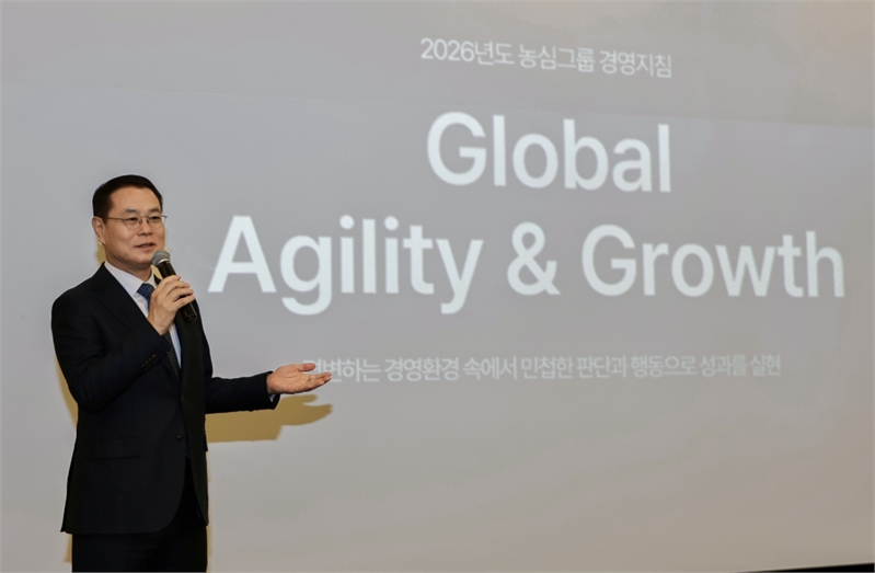 더트래커 = 박현승 기자농심이 새해에도 글로벌 영토 확장을 가속화한다. 농심은 5일 서울 신대방동 본사에서 2026년 시무식을 진행했다고 밝혔다. 시무식에서 조용철 농심 대표이사는 전 임직원을 대상으로 한 프레젠테이션을 통해 올해 경영지침 ‘Global Agility & Growth’를 발표하고 글로벌 사업과 성과를 강