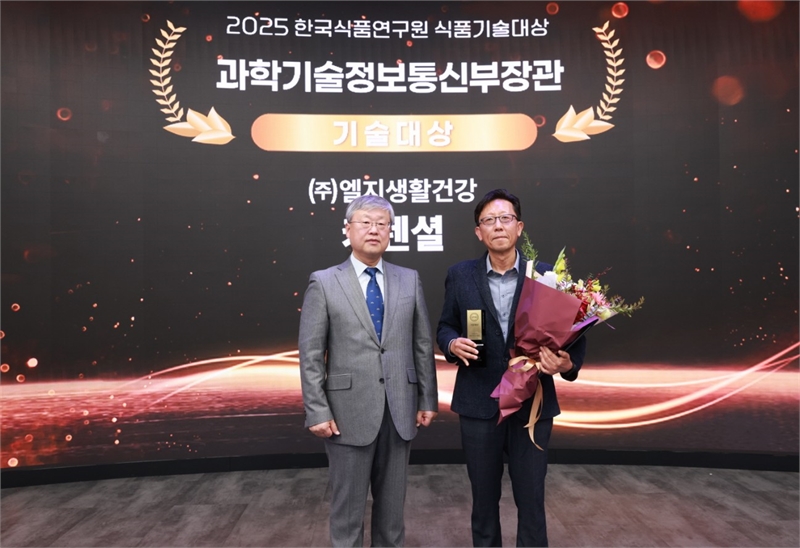 더트래커 = 김태호 기자LG생활건강은 어린이 키 성장 건강기능식품 브랜드 ‘키텐셜’이 지난 29일 서울 삼성동 코엑스에서 열린 ‘2025년 한국식품연구원 식품기술대상’에서 과학기술정보통신부장관상(기술대상)을 수상했다고 30일 밝혔다. 올해로 10회를 맞은 한국식품연구원 식품기술대상은 식품산업 발전에 기여한 우수 제품을 발