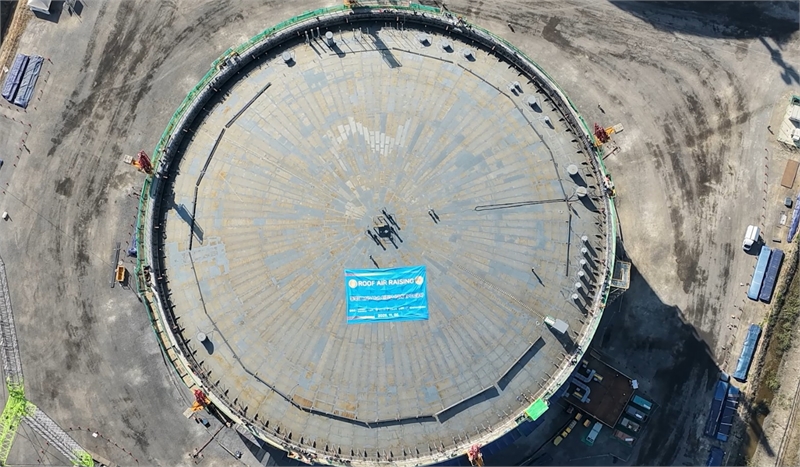 더트래커 = 박현승 기자동북아엘엔지허브터미널은 지난 5일 여수시 묘도 소재 '동북아 LNG 허브 터미널' 건설 현장에서 LNG 저장탱크 지붕을 설치하고 이를 기념하는 상량식을 개최했다고 6일 밝혔다. 상량식은 LNG 저장탱크의 지붕을 설치하는 공정이다. 이날 행사에서는 탱크 내부 바닥에서 제작된 대규모 지붕 구조물을 특수