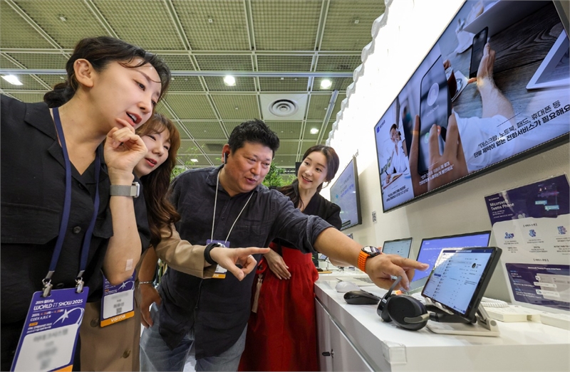 '월드IT쇼 2025'에서 마이크로소프트 팀즈폰을 소개하는 모습.[사진=KT 제공]