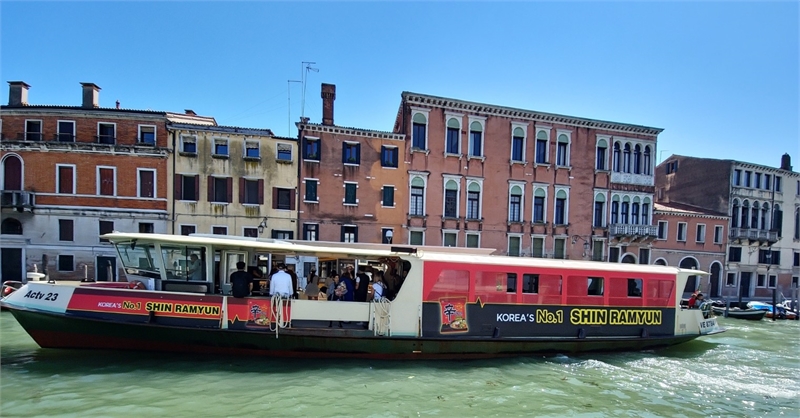 농심은 세계적인 관광지 이탈리아 베네치아의 수상버스에 신라면 래핑 광고를 선보인다고 12일 밝혔다.