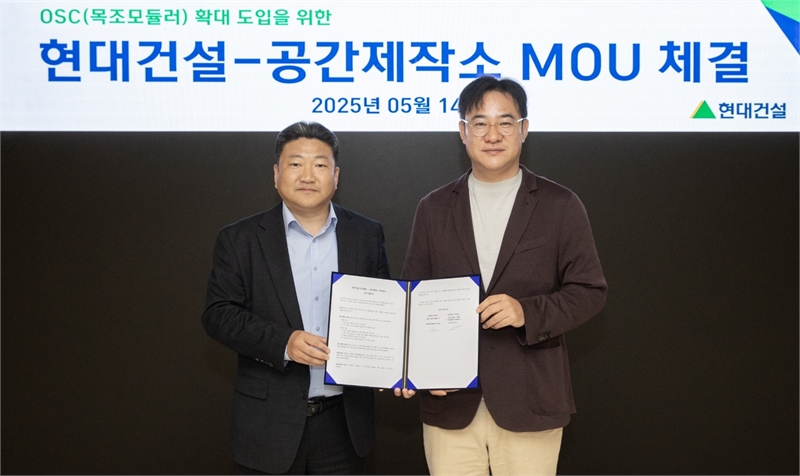 현대건설은 공간제작소와 ‘목조 모듈러 기반 OSC 기술 확대 도입’을 위한 업무협약을 체결했다고 15일 밝혔다.