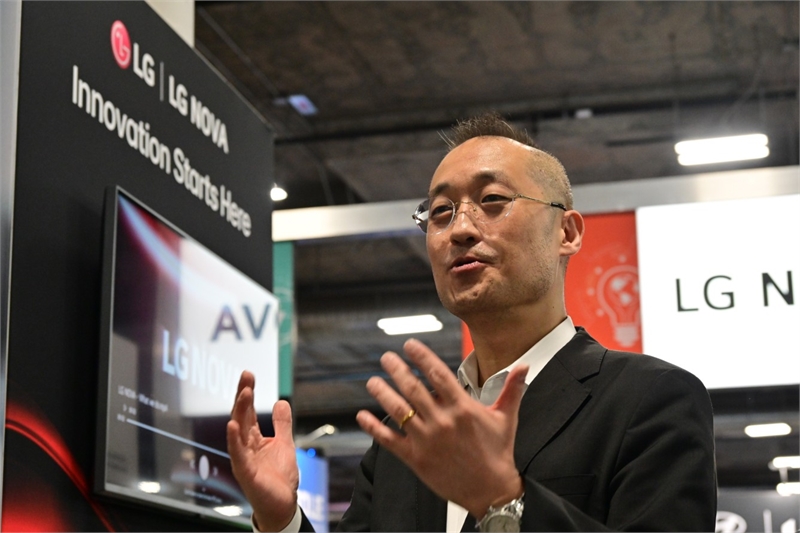 올해 초 CES 2025에서 이석우 LG 노바 부사장이 △헬스테크 △클린테크 △AI 등 미래산업 영역에서 LG전자와 협업을 구체화하는 스타트업과 혁신 기술을 소개하고 있다.[사진=LG전자 제공]