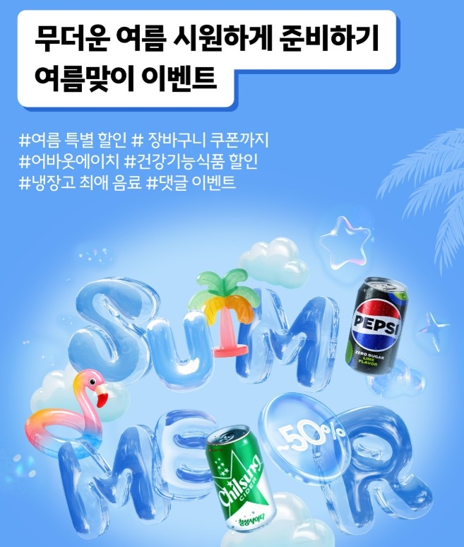 기획전은 제로 칼로리 음료 ‘칠성사이다’, 에너지 음료 ‘핫식스 더킹’, 식물성 음료 ‘오트몬드’ 등을 포함한 63가지 인기 음료를 최대 50% 할인하는 행사다.