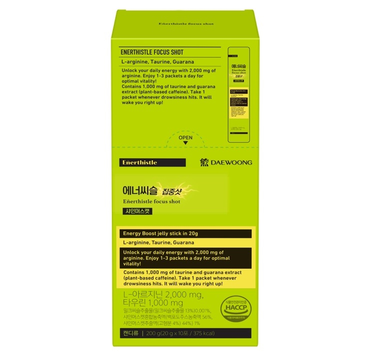 실제로 에너씨슬 집중샷은 밀크씨슬과 비타민B군 3종에 더해 식물성 천연 카페인 성분인 과라나 추출물을 함유한 일반식품(캔디류)이다.