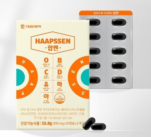 특히 합쎈은 대웅제약의 두 가지 핵심 공법이 적용됐다. ‘엑스기스’ 공법은 오메가3 기유 안에 6가지 주요 성분을 안정적으로 담아 복합 성분임에도 부피를 줄이고 농축도를 높였다. ‘베어쉴드’ 특허 장용성 코팅 기술은 위산에 민감한 성분을 장까지 안전하게 전달해 공복이나 식후 구분 없이 편리한 섭취가 가능하도록 했다.