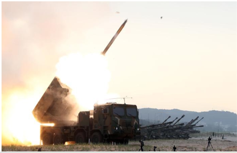 육군 3포병여단의 다연장로켓 발사무기 천무 발사훈련 모습(국방부제공)