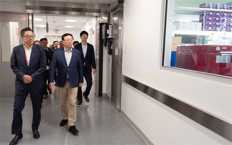 신 회장의 ADC 생산시설 방문은 가동한 이후 처음이다. 박제임스 롯데바이오로직스 대표이사, 신유열 롯데바이오로직스 글로벌전략실장이 함께했다.