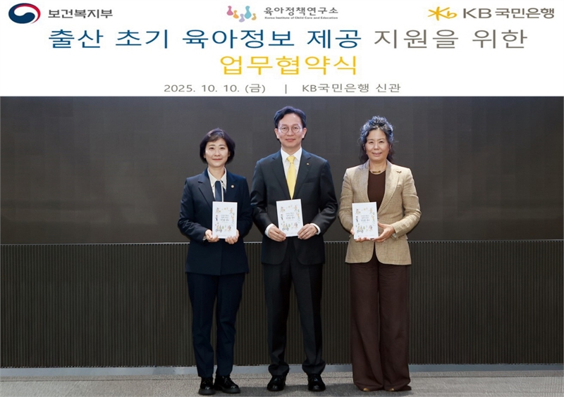 KB국민은행은 10일 보건복지부, 육아정책연구소와 함께 출산 초기 가정의 실질적 양육교육 지원을 강화하기 위한 업무협약(MOU)을 체결했다고 밝혔다.
