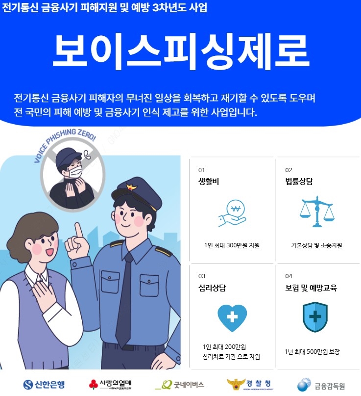 보이스피싱제로 사업은 신한은행이 금융감독원, 경찰청, 사회복지공동모금회, 굿네이버스와 함께 전기통신 금융사기 피해자의 일상회복을 지원하고, 전국민 대상 보이스피싱 피해 예방과 금융사기에 대한 인식을 제고하고자 추진하는 사업이다.