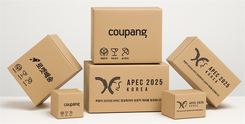APEC 2025 응원 메시지가 담긴 박스와 비닐 포장재 5000만개를 제작해 이달 초부터 전국 로켓배송에 활용하고 있다. 이는 쿠팡의 촘촘한 배송망을 통해 서울과 수도권은 물론 지방 중소도시와 읍·면 지역까지 전국 각지의 고객들에게 전달되고 있다.