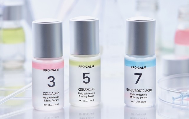 프로-캄 멜라 화이트닝 세럼은 항산화, 미백, 주름개선 기능을 갖춘 맞춤형 세럼이다. 총 3가지 라인업으로 구성돼 피부 고민과 타입에 따라 선택 및 조합이 가능하다.