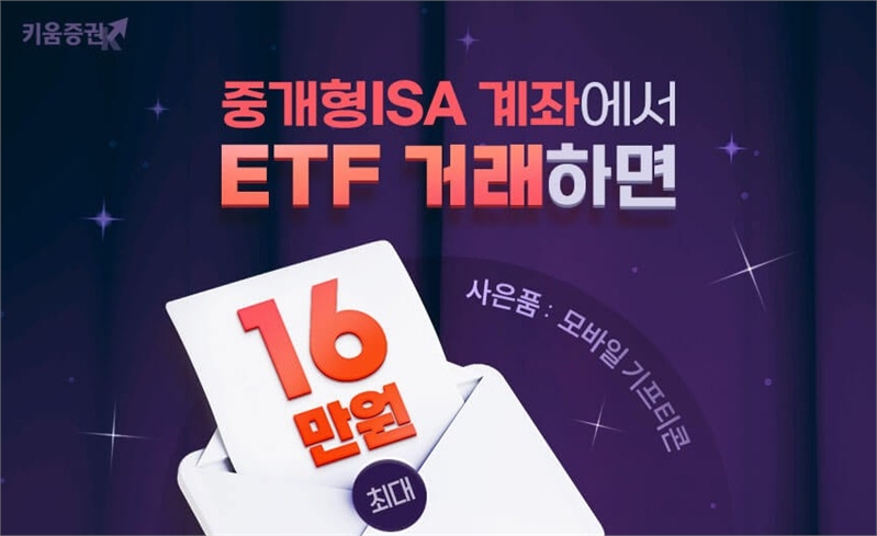 키움증권은 오는 12월 30일까지 ‘중개형ISA에서 ETF 거래하면 최대 16만원 혜택’ 이벤트를 진행한다고 21일 밝혔다.