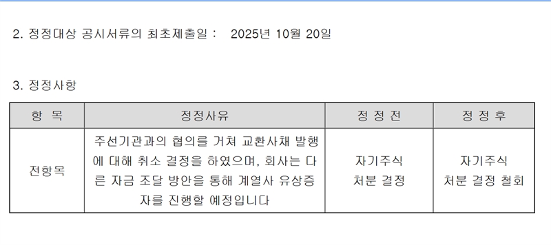 자사주 기반 EB를 발행하려다 당국이나 투자자들의 압력 또는 반발 등 때문에 발행을 포기한 것은 지난 7월의 태광산업, 9월 말의 KCC에 이어 이번이 세번째다.