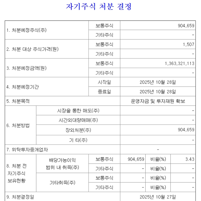 보유 자사주 전량을 매각하겠다는 지난 27일 상장사 아이즈비전 공시