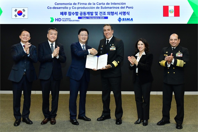 HD현대중공업은 최근 울산 본사에서 페루 국영 시마(SIMA)조선소와 ‘페루 잠수함 공동개발 및 건조 의향서(LOI)’를 체결했다고 3일 밝혔다.