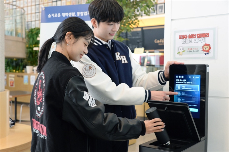 경희대학교 국제캠퍼스 학생이 마이컵을 사용하고 있다.[사진=LG전자 제공]