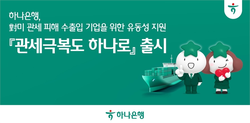 하나은행은 미국 상호관세 시행으로 직·간접 피해가 우려되는 수출입기업의 경영 안정화를 위해 특판 대출 '관세극복도 하나로'를 출시하고 중소‧중견기업을 위한 신속한 유동성 지원에 나선다고 5일 밝혔다.
