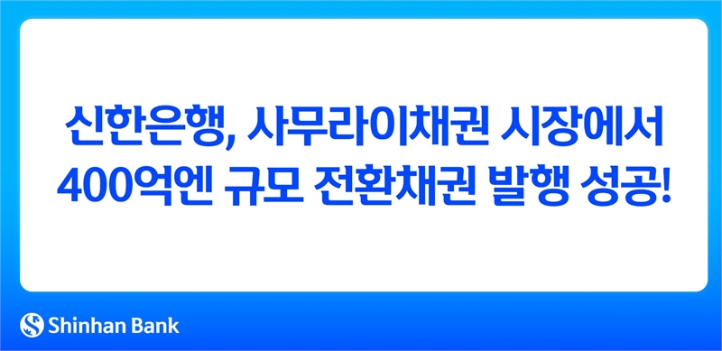 신한은행은 일본 사무라이채권 시장에서 총 400억엔 규모의 전환채권 발행을 성공적으로 완료했다고 10일 밝혔다.