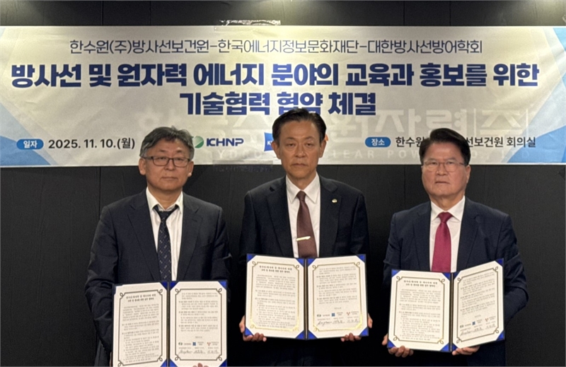 한국수력원자력은 한국에너지정보문화재단, 대한방사선방어학회와 ‘방사선·원자력 등 에너지에 대한 교육 및 홍보를 위한 업무협약(MOU)’을 체결했다고 10일 밝혔다.