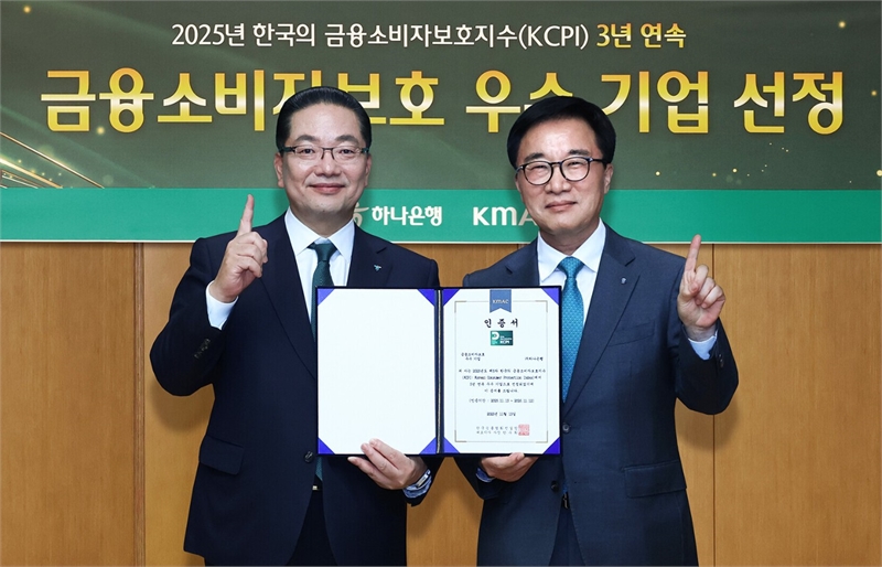 하나은행은 한국능률협회컨설팅(KMAC)이 주관하는 2025년 ‘한국의 소비자보호 지수(KCPI)’ 조사에서 3년 연속 ‘한국의 금융소비자보호 우수 기업’으로 선정됐다고 14일 밝혔다.