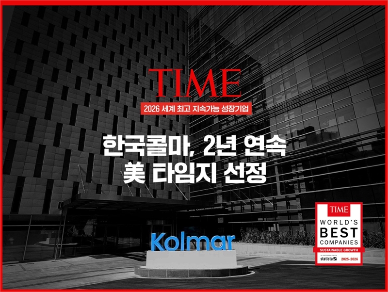 한국콜마는 미국 주간지 타임(TIME)이 발표한 ‘2026 세계 최고 지속가능 성장기업’에 2년 연속으로 선정됐다고 14일 밝혔다.