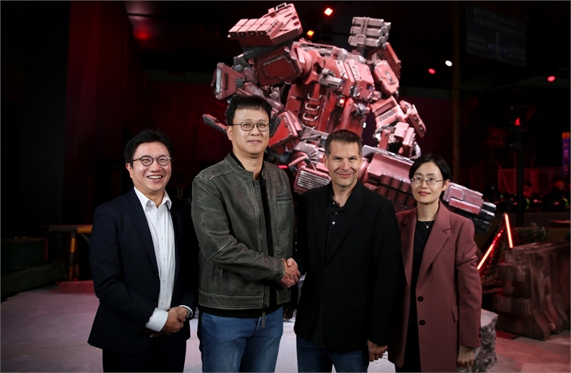 (왼쪽부터) 최원종 엔씨소프트 IP얼라이언스실장, 배재현 빅파이어게임즈 대표, 제러미 홀렛 마이크로소프트 애저 고객신뢰엔지니어링(CRE) 총괄부사장, 임옥희 한국마이크로소프트 고객성공사업부 부문장.[사진=엔씨소프트 제공]