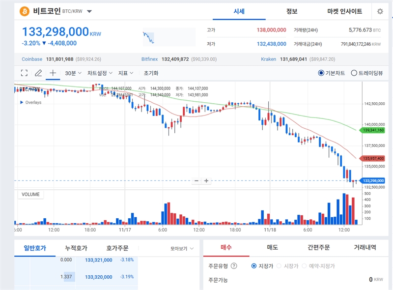 가상화폐 시가총액 1위 비트코인이 하락을 거듭하면서 18일 한때 7개월 만에 처음으로 9만달러 선이 붕괴되기도 했다.