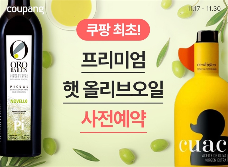 쿠팡은 와우회원을 대상으로 유럽에서 공수한 ‘프리미엄 햇 올리브오일 사전예약’을 오는 30일까지 처음으로 선보인다고 19일 밝혔다.