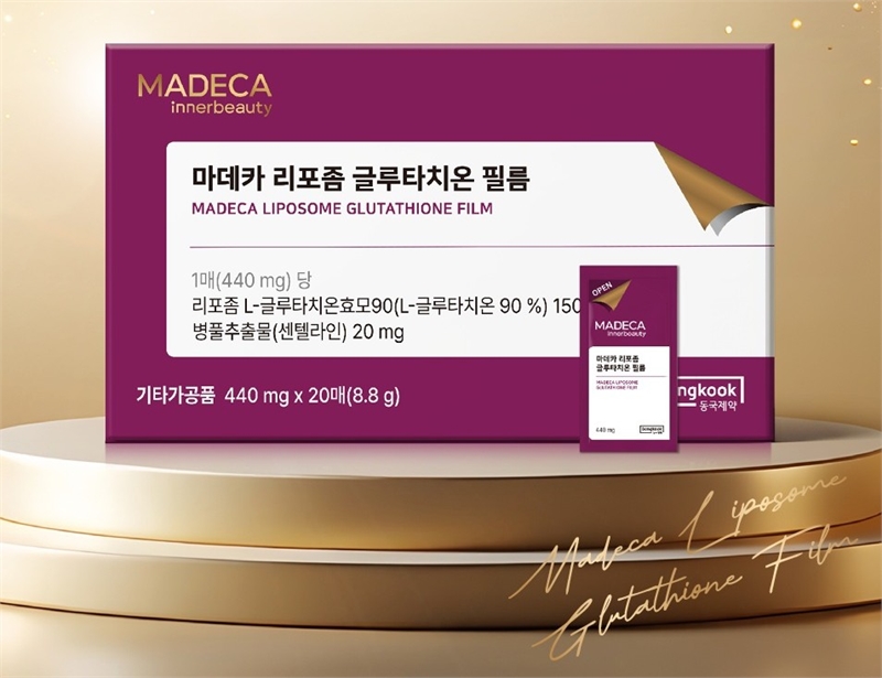 동국제약은 리포좀 제형 기술을 적용해 체내 흡수율을 높인 ‘마데카 리포좀 글루타치온 필름’을 출시했다고 19일 밝혔다.