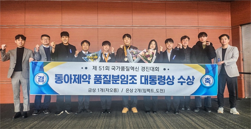 동아제약은 지난 19일 서울 강남구 코엑스에서 열린 '제51회 국가품질혁신경진대회 시상식'에서 대통령상 금상과 은상을 수상했다고 20일 밝혔다.