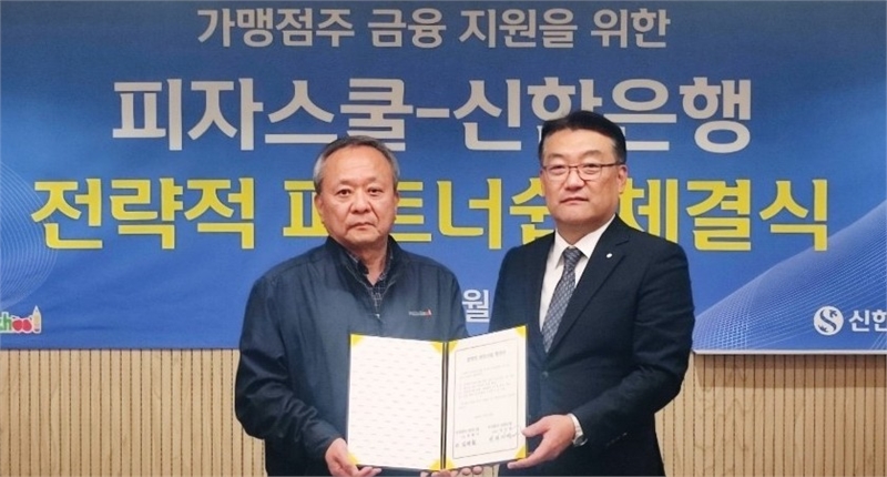 신한은행은 국내 최다 피자 가맹점을 보유한 피자스쿨과 ‘땡겨요’ 플랫폼 가맹점 입점 확대 및 가맹점주 대상 금융 지원을 위한 업무협약을 체결했다고 26일 밝혔다.