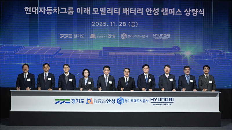 현대차·기아는 28일 경기 안성시 제5일반산업단지 내에서 ‘미래 모빌리티 배터리 안성 캠퍼스 상량식’ 행사를 열고 본격적인 배터리 연구개발 인프라 구축에 나선다고 밝혔다.
