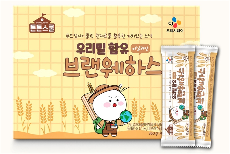 CJ프레시웨이의 푸드 업사이클링 상품은 곡물 가공 과정에서 발생하는 식품 부산물을 버리지 않고 새로운 원료로 활용해 만든 상품이다. 학교 급식 전문 브랜드 튼튼스쿨, 키즈 식자재 브랜드 아이누리를 통해 운영한다.