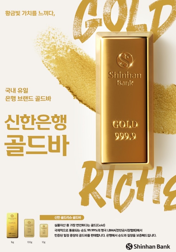 또 신한은행 브랜드 골드바는 런던금시장협회(LBMA)에서 인증을 받은 제품으로, 순도 99.99%의 국제 표준 골드바다.