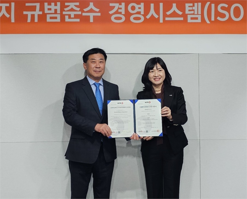 한화에너지는 글로벌 인증기관인 한국경영인증원(KMR)으로부터 규범준수 경영시스템(ISO 37301) 인증을 획득했다고 9일 밝혔다.