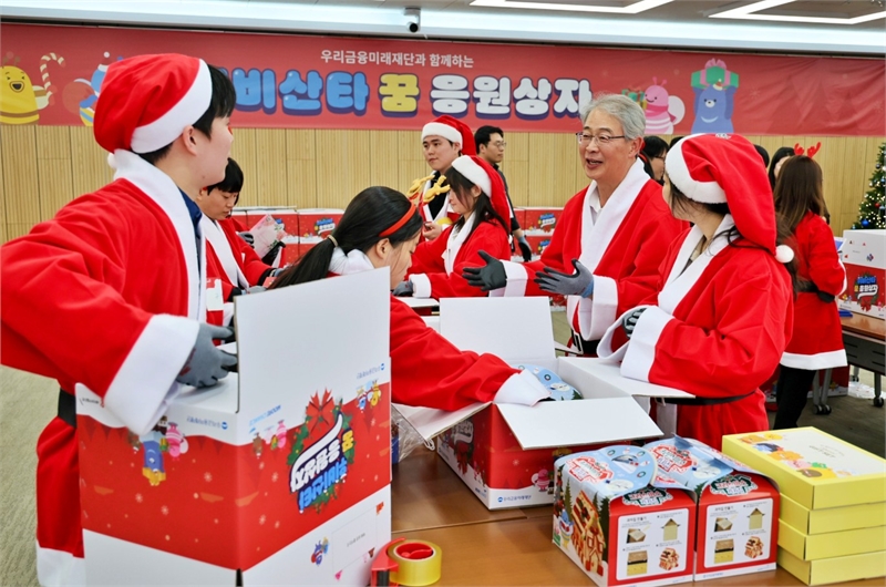 우리금융그룹 우리금융미래재단은 지난 8일 서울 중구 우리은행 본점에서 ‘우리금융 위비산타 출정식’을 열고 전국 아동 양육시설 초·중등생 6500명에게 총 8억원 규모의 크리스마스 선물 ‘꿈 응원상자’를 마련하는 행사를 진행했다고 9일 밝혔다.
