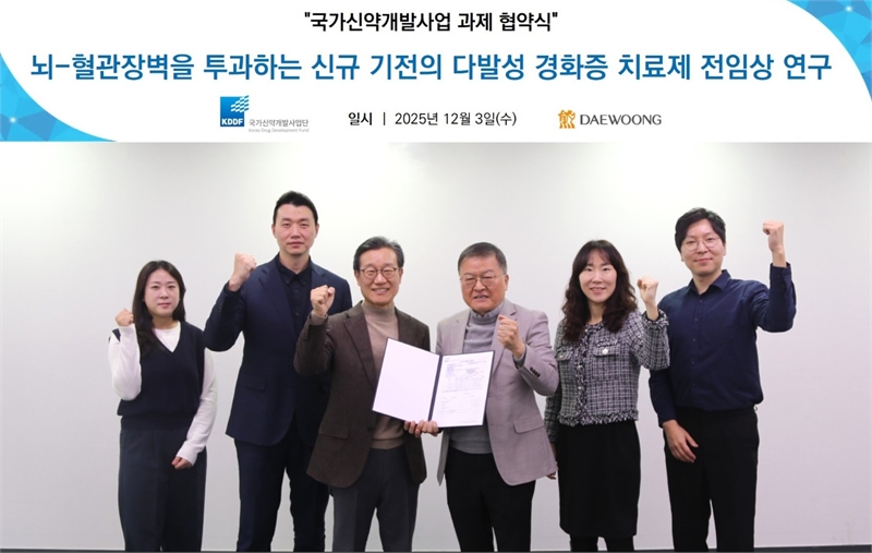 박준석 대웅제약 신약Discovery센터장은 “이번 프로젝트는 신경염증 치료를 목표로 한 전략적 신약 개발 과제”라며 “다발성경화증은 뇌혈관장벽 문제로 인해 기존 치료제의 한계가 뚜렷한 질환인 만큼, 우수한 뇌혈관장벽 투과능을 갖춘 후보물질로 차별화된 치료 옵션을 제시하는 것이 목표”라고 말했다