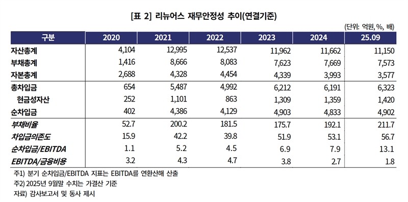 리뉴어스는 폐기물 소각 및 매립 부문을 중심으로 과거 양호한 수준의 수익성을 유지해왔으나 최근에는 경쟁 심화와 처리단가 하락, 고정비 부담 지속 등으로 수익성이 저하되며 영업현금흐름 규모가 축소되고 있다.