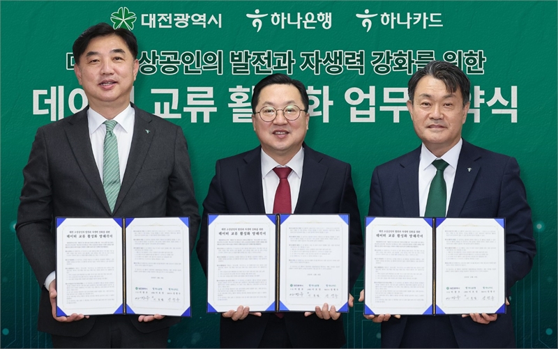 하나은행과 하나카드는 대전광역시와 함께 '데이터 교류 활성화를 위한 업무협약'을 체결하고 지역사회 발전 및 소상공인의 자생력 강화를 위해 상호 협력키로 했다고 17일 밝혔다.
