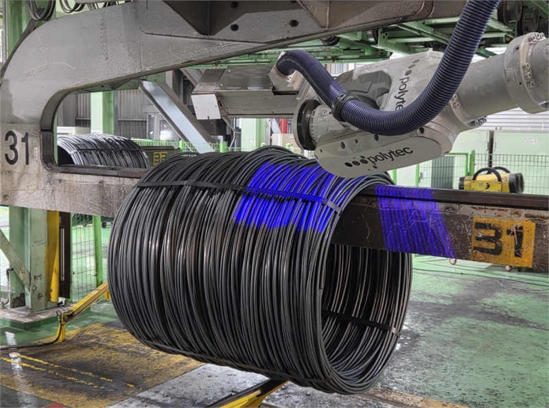부착로봇은 이송된 선재를 스캔해 태그 부착 위치를 찾아 그곳에 태그를 자동으로 붙인다.