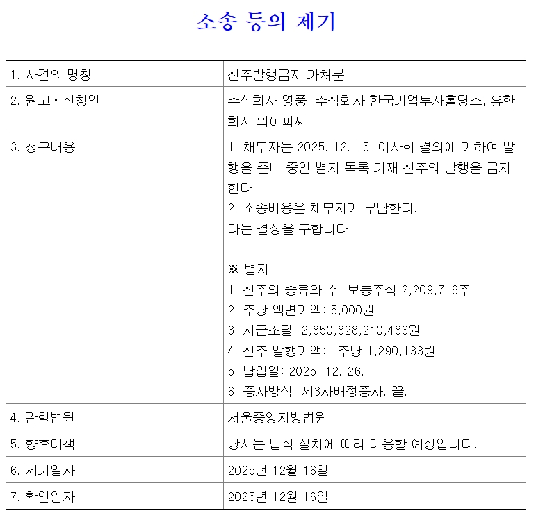 지난 16일 MBK파트너스-영풍 연합이 제기한 가처분소송 공시