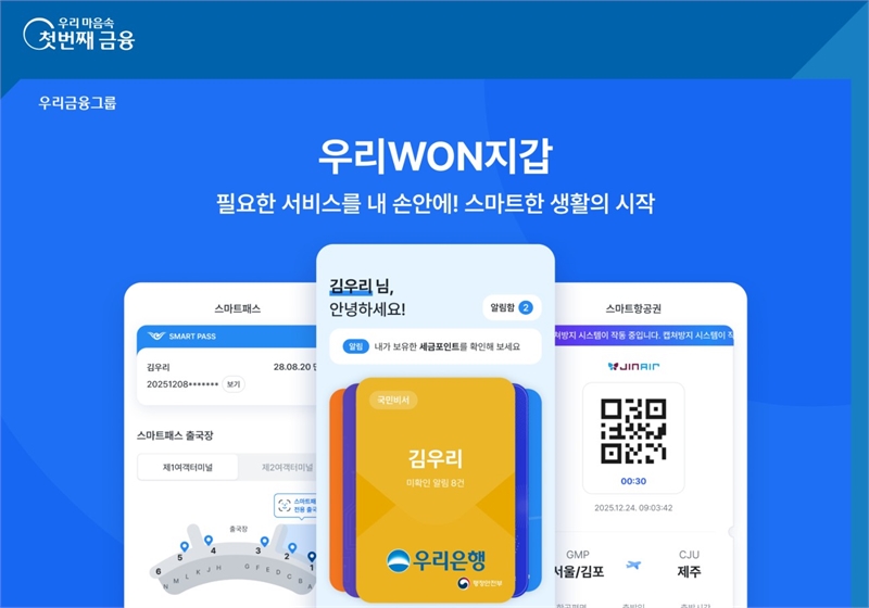 우리WON지갑은 일상에 필요한 생활편의 및 공공(정부) 정보를 모아 개인 고객별 디지털지갑 형태로 제공하는 서비스이다. 지난 6월 전면 리뉴얼을 통해 사용자 이용 패턴과 취향을 반영한 맞춤형 서비스 기능을 강화했다. △주민등록증 모바일 확인 △디지털배지(경력증명) △스마트항공권 등 약 20여 종의 생활밀착형 서비스를 제공하고 있다.