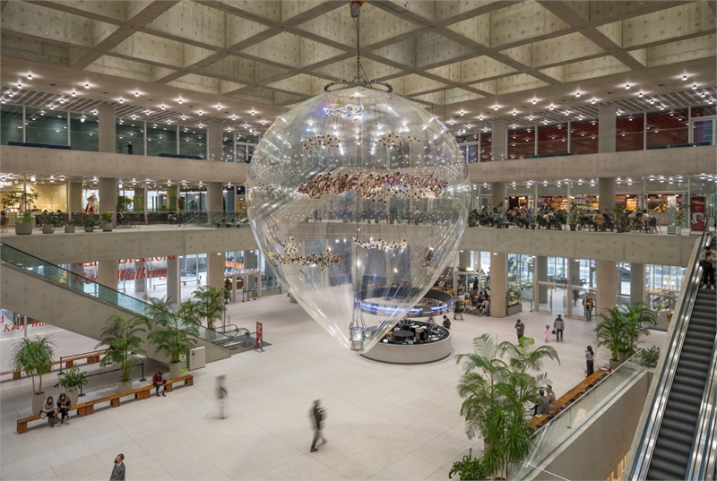 공중에 떠 있는 풍선 형태의 작품은 아모레퍼시픽 세계본사의 개방감 있는 아트리움 공간에 경쾌하면서도 압도적인 조형 경험을 제공한다.