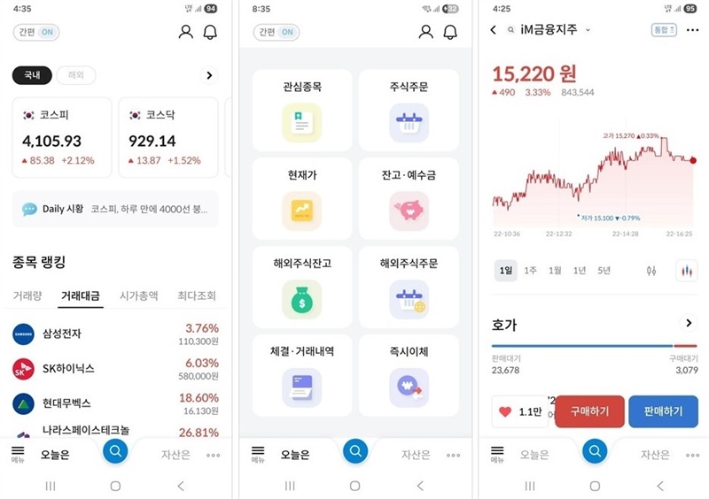 관심종목, 주식주문, 현재가, 즉시이체 등 투자자가 가장 많이 사용하는 항목의 바로가기도 배치해 원하는 메뉴로의 접근 경로도 최소화했다.