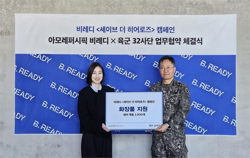 아모레퍼시픽은 남성 화장품 브랜드 비레디가 사회공헌 캠페인 ‘세이브 더 히어로즈’의 일환으로 대한민국 육군 32사단에 3400만원 상당의 제품을 기부한다고 24일 밝혔다.