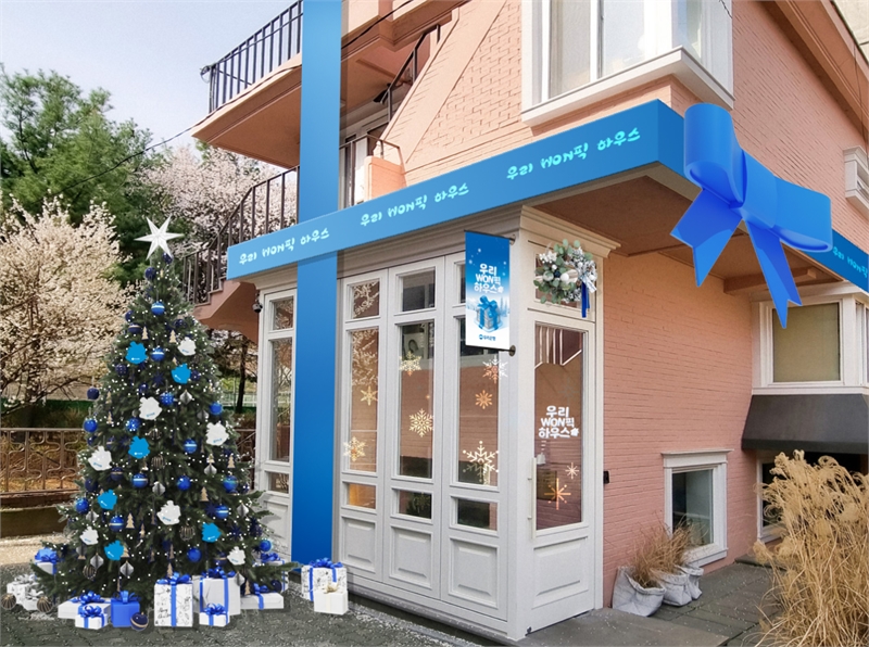 우리WON픽 하우스는 주택청약의 전 과정을 한 번에 체험할 수 있는 공간이다. 연말 시즌에 맞춰 우리은행의 상징색인 ‘우리 딥 블루’를 활용해 블루 크리스마스 분위기로 꾸몄다. 방문객은 포토존에서 사진도 찍을 수 있다.