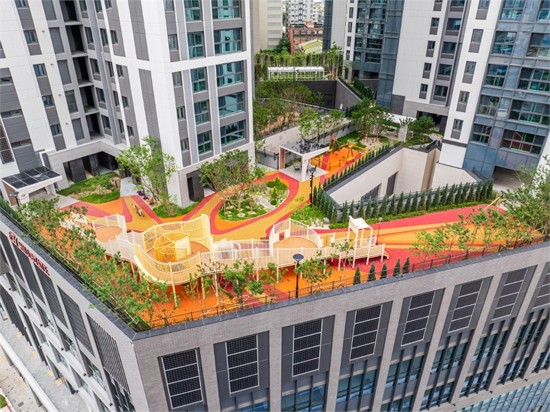 '힐스테이트 소사역' 옥상에 설치된 어린이놀이터 전경.[사진=현대엔지니어링 제공]