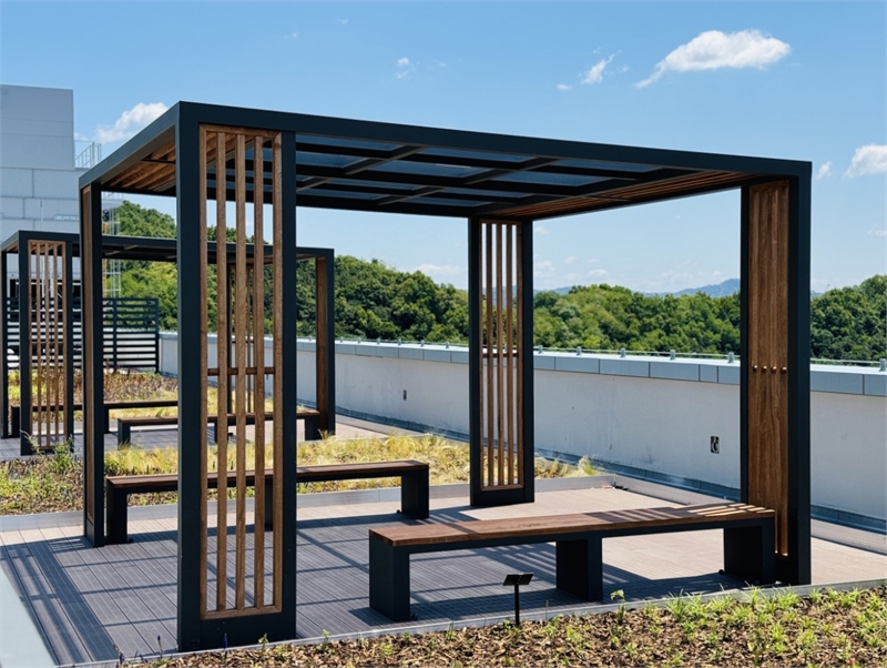 식물의 뿌리가 구조물의 내구성을 저하시키지 않도록 방근층을 설치하고, 경량토양을 통해 하중 부담을 최소화하며 통기성 및 수분유지 능력을 높였다.