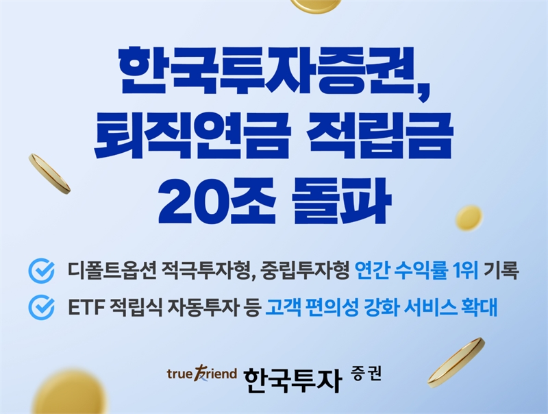 한국투자증권은 퇴직연금 적립금이 20조원을 돌파했다고 29일 밝혔다.